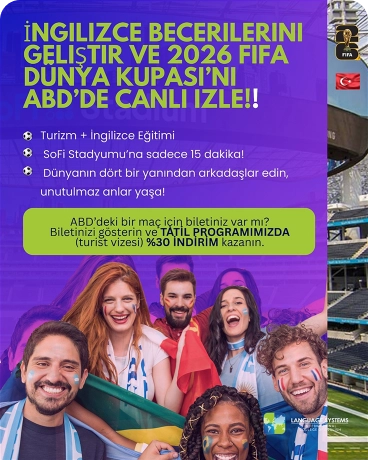 Dünya Kupası deneyimini Language Systems International’da İngilizce öğrenme macerasıyla birleştirmek isteyen taraftarlar için harika bir kampanya hazırlıyoruz. Bizi takipte kalın — çok yakında harika bir şey geliyor!